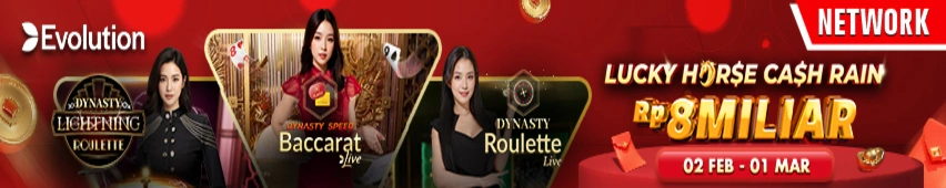 Lucky Horse Cash Rain oleh Evolution Gaming akan berlangsung mulai 02 Februari 07:00 WIB hingga 01 Maret 06.59 WIB. Total jumlah hadiah RP 8,000,000,000 yang akan dibagikan kepada 29,760 pemain yang memasang taruhan di Dynasty Speed Baccarat 1-8, Dynasty Roulette and Dynasty Lightning Roulette selama periode promosi.